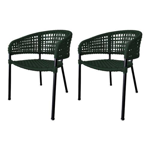 Kit 2 Cadeiras Sol Corda Náutica Base Em Alumínio Preto/verde Musgo - Cor: Verde