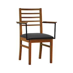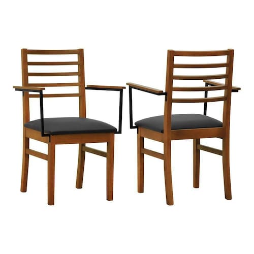 Kit 2 Cadeiras Tiê Madeira Maciça Encosto Ripado C/braço Metal - Amêndoa Assento Estofado Corano Preto