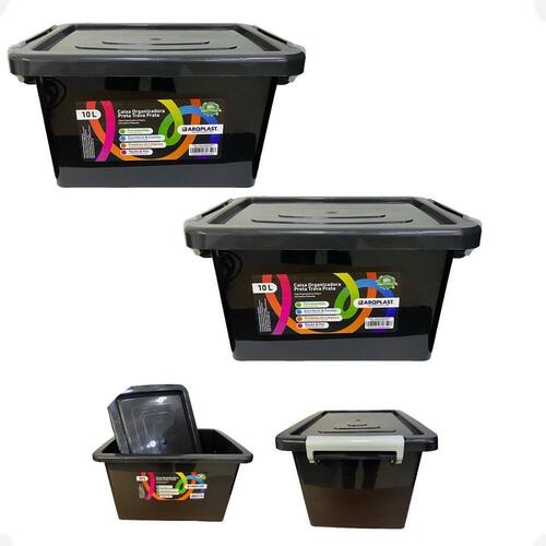 Kit 2 caixa organizadora multiuso preta com trava 10 litros