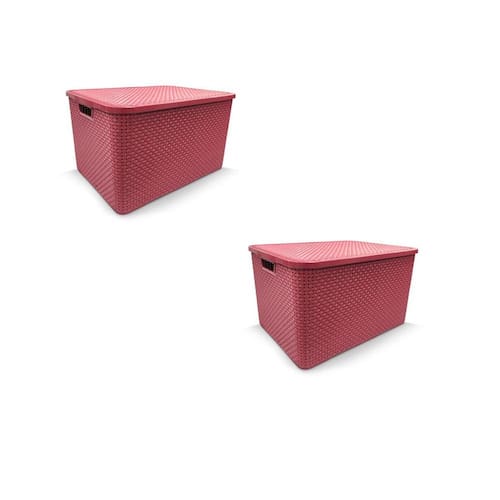 Kit 2 Caixa Organizadora Rattan Decorativa com Tampa ORGANIZADOR RATTAN com TAMPA 07 LITROS - ROSA