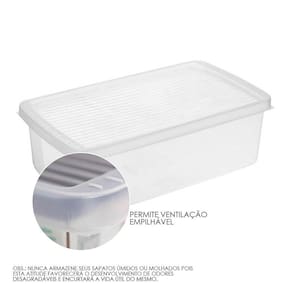 Produzida em plástico transparente, a caixa para sapatos média é um item essencial para você com excelente gosto e sofisticação.