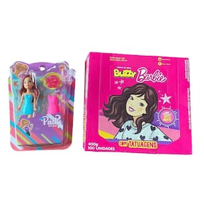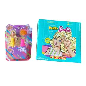 Contém: 2 bonecas patty com acessórios + anel 2 caixas chiclete buzzy com 100 unidades com figurinhas de tatuagem temporária sabor :hortelã ou tutti frutti estaremos enviando o sabor disponível em estoque. Boneca patty cor: estaremos enviando a cor da boneca aleatória conforme disponibilidade em estoque . Dimensão do produto aproximada: 8,5cm x 2,5cm composição: plástico indicação: maiores de 3 anos