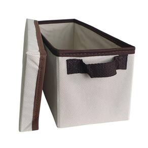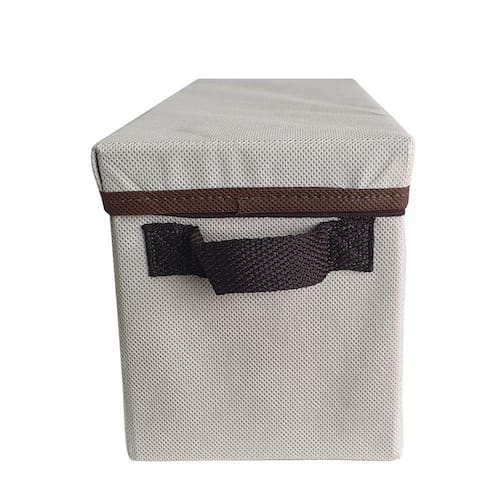 Largura: 14 cm Altura: 15 cm Profundidade: 38 cm Cor predominante: bege. Cor das bordas: vermelho, marrom ou azul Puxador: alça Material: TNT 80g, estrutura de Cadboard, e poliéster Peso: 277g Ean: 751320233950