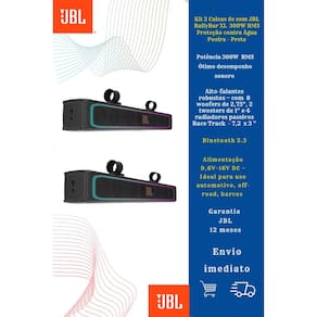 Kit 2 Caixas de som JBL RallyBar XL para Veículos Ext 300W RMS Proteção contra Água Poeira - Preto