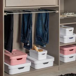As alças ergonômicas proporcionam um manuseio e transporte agradáveis, além de assegurar a ventilação adequada dos objetos armazenados. O design inovador das caixas Cube permite encaixá-las e empilhá-las com segurança e estabilidade, mesmo em tamanhos diferentes, otimizando seu espaço e organização.