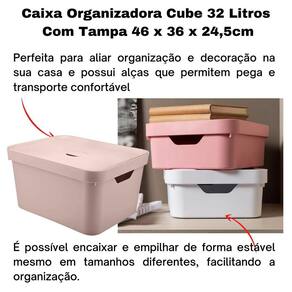 Eleve o padrão de organização e estilo da sua casa com a sofisticada Caixa Organizadora Cube de 32 Litros com Tampa, com dimensões de 46 x 36 x 24,5 cm. Esta caixa versátil oferece uma vasta gama de cores, garantindo que se adapte perfeitamente a qualquer ambiente do seu lar. A linha Cube foi desenvolvida com foco no conforto e praticidade da sua rotina, facilitando o armazenamento e o transporte dos seus itens.