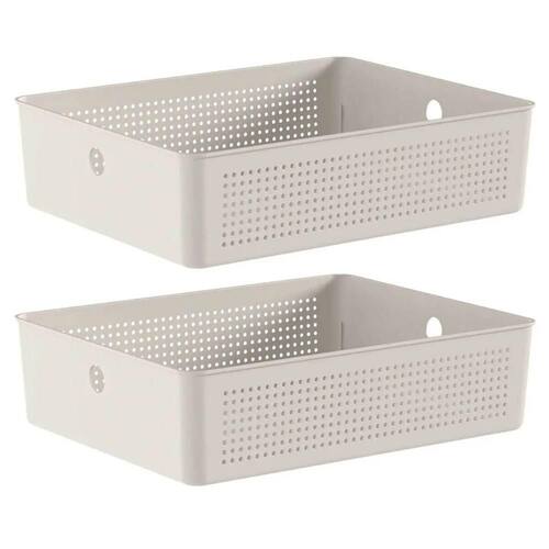 Kit 2 Caixas Organizadoras Flow Bege 34x27x9cm Cesto para Lavanderia Closet Banheiro.