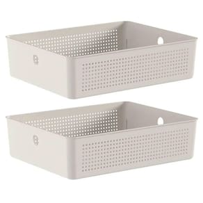 Kit 2 Caixas Organizadoras Flow Bege 34x27x9cm Cesto para Lavanderia Closet Banheiro.