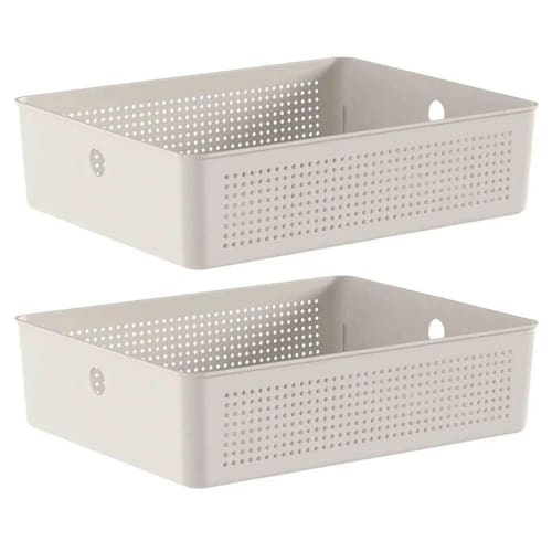 O kit de caixas organizadora de 8,2L da Ou são ideais para tornar seu ambiente mais organizado e funcional. Os cestos organizadores são perfeitos para armazenar produtos de limpeza, roupas, toalhas, acessórios, produtos de higiene, brinquedos ou alimentos. Possuem cantos arredondados que trazem um design elegante e alças laterais que facilitam o manuseio e transporte. Podem ser utilizadas com tampas (vendidas separadamente) sendo uma ótima opção para uso empilhadas em espaços compactos. Contam ainda com área livre para aplicação de etiquetas de identificação.