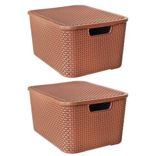 Kit 2 Caixas Organizadoras Rattan Marrom 20 Litros com Tampa 25597 Arqplast Kit 2 Caixas ORGANIZADORas RATTAN com TAMPA 20 MARROM 25597 ARQPLAST