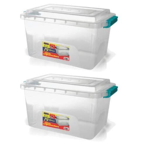 Kit 2 Caixas Organizadoras Transparente Tampa e Travas 19 L 2173 Ercaplast Caixa Organizadora Alta 19 Litros com Travas