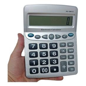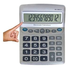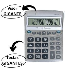 Calculadora Grande Giganta para sua Loja ou Comercio, Pessoas com Problemas de Visão, Idosos CARACTERÍSTICAS DO PRODUTO:- Tamanho do Produto: 21 cm x 16 cm x 4,4 cm.- Funciona com 1 Pilha AA (comum)- 12 Dígitos- Teclas: Elevadas e macia ao toque.- Visor: LED, Claro e de fácil visualização.- Não emite nenhum som.- Desligamento: Possui tecla OFF.- Cor: Prateado.- Material: PlásticoContém:2x Calculadora