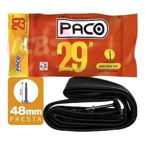 Este é um conjunto de duas câmaras de ar para bicicleta, adequadas para aros de 29x1.95/2.125. As câmaras são feitas de borracha butílica, um material conhecido pela sua elevada impermeabilidade aos gases e ao ar. Além disso, a borracha butílica é resistente ao calor e ao envelhecimento causado pela intempérie. Também é resistente a produtos químicos, gorduras e substâncias fortemente oxidantes. As câmaras possuem uma válvula presta de 48mm. O produto é da marca Paco. Marca: Não Informado Ean: 79037459150086