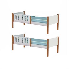 Kit 2 Camas Solteiro Ônix - Branco/Castanho Claro - Divaloto Móveis