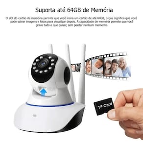 Câmera ip 3 antenas - resolução 1080p com aplicativo yooseeVersão com resolução melhoradaUtilizar o aplicativo: yooseeIdeal para uso como babá eletrônicaFácil configuraçãoPossui alertas de movimento, infravermelho, alertas no celular e muitos outros recursosConexão via cabo ou wifi com muita praticidadeGire sua câmera para os lados, para cima e para baixo e veja tudo em alta definiçãoPossui microfoneEspecificações técnicas:-quantidade de antenas: 3;-resolução: 1080p-sensor: 1/4 cmos;-visibilidade noturna: sim;-infravermelho: sim;-ir-cut: sim;-alerta de movimento: sim;-consumo de energia: 5w;-armazenamento: micro sd/sdhc/sdxc de até 64gb não incluso ;-sensor: cmos;-ethernet: 10/100mbps rj-45;-wireless: ieee 802.11b/g/n - 2,4ghz;-compatibilidade mobile: ios, android, iphone, windows, blackberry, simbian.;-sistemas operacionais: windows xp, windows vista, windows 7, windows 8, windows 10;-formato de compressão de vídeo: 1,3mp;-iluminação mínima: 0,5 lux;-rotação: 355 - horizontal / 120º vertical;-ângulo de visão: 75º;-lente: 3,6mm;-alimentação: 110/220v;-dimensões: 7x10,5x13cm;-peso: 600g;-anatel: 00907-22-05662Conteudo da embalagem:2x câmera wireless ip 3 antenas2x fonte usb2x cabo micro usb v82x guia de instalação2x suporte de fixação2x kit de buchas e parafusos cada câmera vai na sua embalagem individual
