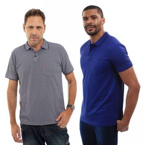 Kit 2 Camisa Polo Masculina Pique Jacquard com Bolso Casual - Azul doce - M