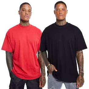 Conteúdo do produto: Kit 2 Camisas Oversized Vermelha e Preta Gola Alta Algodão