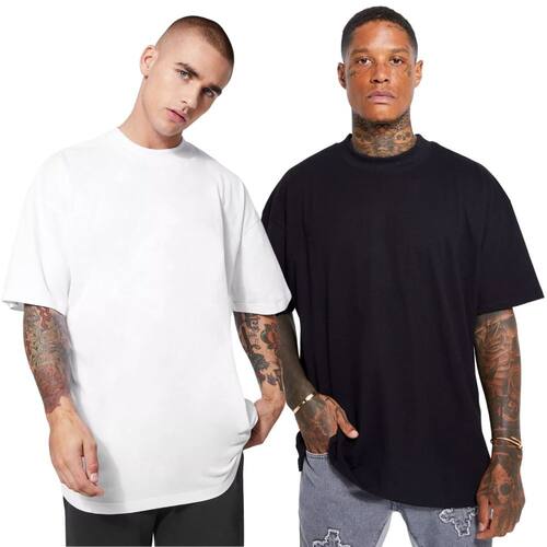 Conteúdo do produto: Kit 2 Camisetas Oversized Algodão Preta e Branca Gola Alta