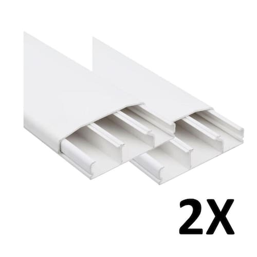 A canaleta é que responsável por proteger os cabos contra danos externos e armazenar condutores elétricos isolados, mantendo o ambiente esteticamente mais bonitas e realizando um melhor acabamento para cabos que por algum motivo têm que ficar expostos.Descrição do produto: Canaleta com Divisória Com 3 Divisórias Material: PVC Acompanha fita dupla face em toda a estruturaEspecificações: Cor: Branca Comprimento: 2M Largura: 4cm Altura: 1,5cm Quantidade: 2 Marca: Canaleta