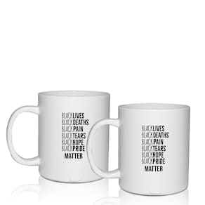 Kit 2 Canecas Brancas Personalizadas Lista Black Lives A Caneca Branca de Policarbonato Personalizada ou Caneca ecológica é ideal para projeto de Adote uma Caneca nas empresas por gerar menos lixo. Especificações: Material: Acrílico Policarbonato Liso , Altura: 8,3 cm, Diâmetro: 7,5 cm, Capacidade: 300 ml, Cor: Branco, Quantidade: 2 peças Ean: 7897581917901
