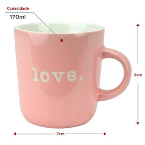 Kit 2 Canecas de Porcelana Love Rosa 170ml Lyor Se você é fã de um estilo mais romântico e delicado, a Caneca de Porcelana Love Rosa 170ml da Lyor é a escolha perfeita para você Com seu design elegante e moderno em rosa, essa caneca é perfeita para trazer um toque de amor e charme para o seu dia a dia ou para presentear aquela pessoa especial. Feita em porcelana de alta qualidade, ela é resistente e durável, além de ser fácil de limpar. Com capacidade para 170ml, você pode desfrutar de uma bebida quente ou fria enquanto desfruta da sua mensagem de amor. Adquira já a sua Caneca de Porcelana Love Rosa 170ml Lyor e mostre todo o seu amor de uma forma delicada e elegante.