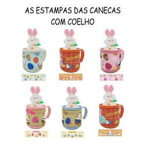 Kit 2 Canecas Emborrachada + 2 Coelho Coelhinho Páscoa Pelúcia