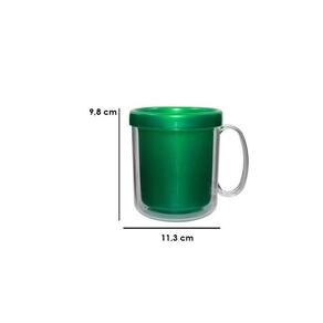 Caneca Térmica Cristal 300mL, é atóxica e formada por duas partes: corpo externo cristal transparente feito em Plástico Premium PS e parte interna colorida com pigmento de efeito metalizado feita em Plástico Premium PP . Dupla parede que conserva por mais tempo a temperatura. Produto não pode ir ao micro ondas, lava louças e freezer. Imagens meramente ilustrativas. Marca: Bb Store Ean: 7908567012937