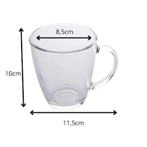 Características: - Composição: Vidro - Conteúdo da embalagem: 2 canecas - Capacidade de cada caneca: 350ml - Medidas: 10cm altura x 8,5cm diâmetro x 11,5cm largura com a alça