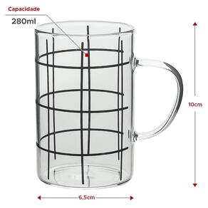 Kit 2 Canecas Vidro Borossilicato Stripes 280ml A linda caneca Stripes 280 ml resistente ao calor vai trazer um aspecto diferenciado à sua cozinha. Para aqueles que buscam encantar seus convidados é a peça perfeita, transformando a hora de servir em um momento único e marcante