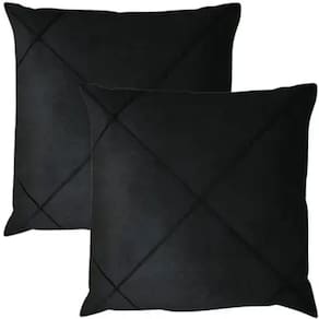 Kit 2 Capa de Almofada Suede Aveludada Drapeada 45x45cm Preto -