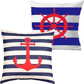 Kit 2 Capas De Almofadas Âncora e Timão Vermelho Marítima -
