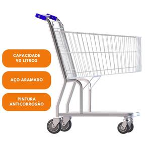 Kit 2 Carrinhos De Compras Simples 90 Litros Em Aço Aramado - Amapá