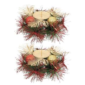 -02 Unidades Castiçal Natal Decorado Dourado e Vermelho 15cm – Master Christmas