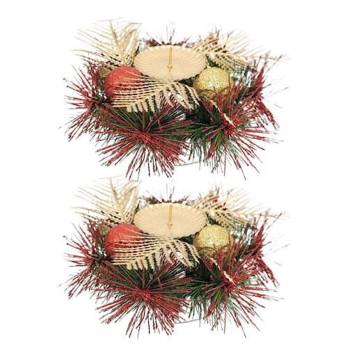 Kit 2 Castiçal Natal Decor Bolas Dourado e Vermelho 15cm
