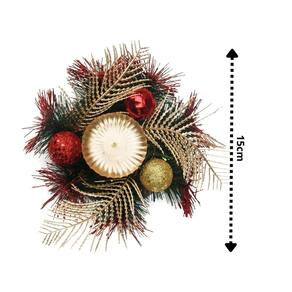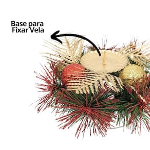 Transforme seu ambiente com a elegância e o brilho do Castiçal Natalino Decorado com Bolas e Folhagens. Ideal para quem aprecia uma decoração natalina sofisticada e acolhedora.