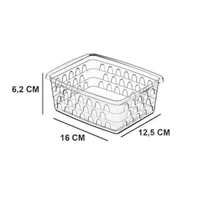 Kit 2 Cesto Caixa Organizadora Multiuso Pequeno Transparente 1117 Uninjet Cestos organizadores nunca são demais, não é mesmo Temos sempre alguma coisa a mais para guardar. Os cestos Multiuso Uninjet, são muito charmosos e discretos. Podem ser em armários de cozinha, gavetas, guarda roupas e até mesmo para decoração de banheiro. REFERÊNCIA 1117 MEDIDAS Altura: 6,20cm Largura: 12,50cm Comprimento: 16,00cm Marca: Não Informado Ean: 7791900586154
