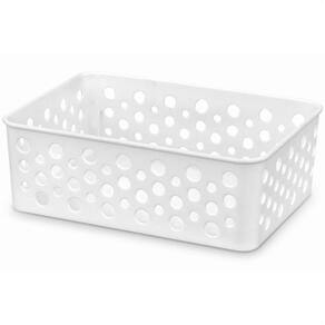 Kit 2 cestos organizadores decorativos multiuso p branco Kit 2 cestos branco p 19x13,8x6,5cm plástico multiuso