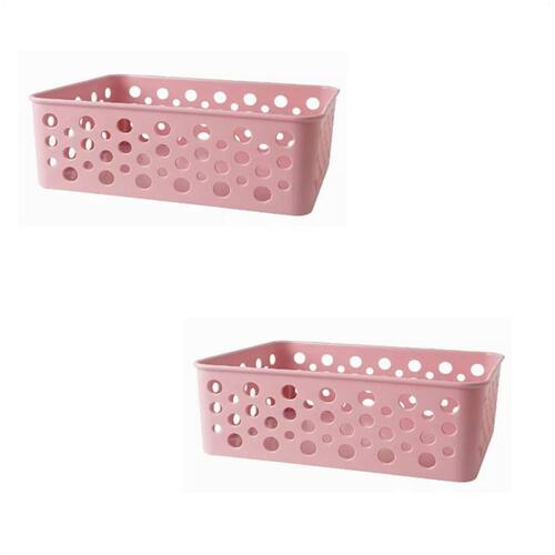 Kit 2 cestos organizadores decorativos multiuso p rose Kit 2 cestos rose p 19x13,8x6,5cm plástico multiuso