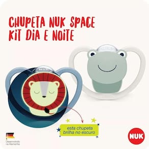 Kit 2 Chupeta Nuk Space Silicone Glow Brilha no Escuro Tamanho 1 Menino Menina 0 A 6 Meses Leão e Sapinho Recém Nascido Somos a loja Juba Baby Store, referência de mercado no segmento de produtos para bebês. Nossos anúncios são feitos com muito carinho e pensados para esclarecer todos os detalhes dos nossos produtos. Se você ainda ficar com alguma dúvida, pode entrar em contato com a gente através do campo de perguntas, iremos responder o mais rápido possível. Nossos pacotinhos são muito embalados em uma caixinha super segura para que você receba o produto em perfeito estado. Kit com 2 chupetas nuk space silicone tamanho 1. Recomendado para bebês de 0 a 6 meses. Está com dificuldades para encontrar a chupeta certa para o seu bebê As novas chupetas NUK Space têm um escudo revolucionário que possui aberturas muito grandes, permitindo o fluxo de ar máximo e permitindo que a pele suave do bebê respire. Como todas as chupetas NUK, o NUK Space é aceito por 95% dos bebês e apresenta o formato mamilar aprimorado. O mamilo assimétrico da NUK se ajusta naturalmente ao paladar do bebê e agora é aprimorado para permitir mais espaço para um movimento de sucção natural, reduzir a pressão nos dentes e na mandíbula e ajudar a evitar o desalinhamento dos dentes. Inventada há mais de 60 anos por dentistas e médicos pediátricos, a chupeta NUK é modelada segundo o formato natural do mamilo da mãe durante a amamentação. Isso facilita a transição do seio para a chupeta e vice-versa. O escudo em forma de coração NUK no NUK Space se encaixa perfeitamente sob o nariz do bebê para facilitar a respiração e evita irritações. Agora, todas as chupetas NUK estão disponíveis em um estojo de armazenamento reutilizável que facilita a limpeza no microondas. CONTEÚDO DA EMBALAGEM: 01 Chupeta Nuk Space com desenho de Leãozinho 01 Chupeta Nuk Space com desenho de Sapinho 01 Estojo esterilizador Este produto é certificado pelo INMETRO: CE-PUR/IQB-000612 - NBR 10334 - OCP 0006 O Ministério da Saúde adverte: A criança que mama no peito não necessita de mamadeira, bico ou chupeta. O uso de mamadeira, bico ou chupeta prejudica o aleitamento materno.