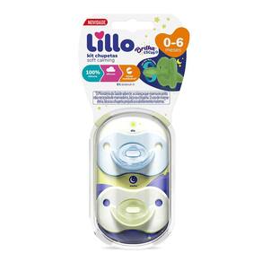 Kit 2 Chupetas 100% Silicone Calming Night Day Azul - Lillo