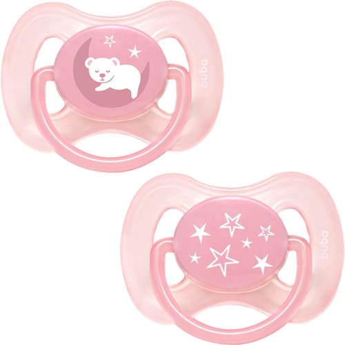 Kit 2 Chupetas Buba Comfort Tam 2 Noturna Ursinhos Rosa