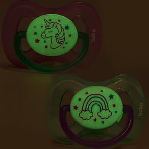 KIT 2 CHUPETAS BUBA COMFORT TAM1 NOTURNA UNICÓRNIO 1 CAPA