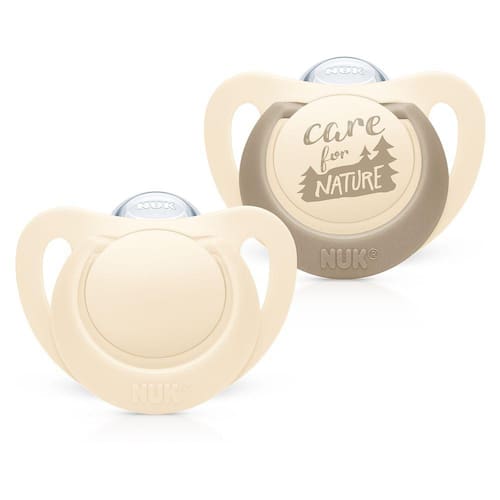 O kit com 2 Chupetas NUK for Nature foi desenvolvido com mais de 98% de matérias-primas naturais, sendo que a sustentabilidade não se limita apenas à chupeta. Sua embalagem é feita de papel 100% reciclado, certificado pelo FSC.