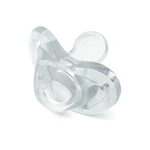 O bico em silicone possui topo curvado e base angular. Possui um estojo protetor que pode ser utilizado no micro-ondas para higienização das chupetas e também para o transporte.