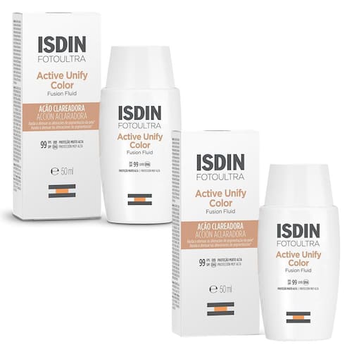 Protetor Solar Facial Foto Ultra ISDIN Active Unify Color FPS 99 - 50ml Prevenção diária da hiperpigmentação da pele. Clareia e uniformiza o tom da pele. Modo de usar:O Protetor Solar Facial Foto Ultra ISDIN Active Unify Color ajuda a clarear e uniformizar o tom de pele e regular a produção de melanina, auxiliando na reduzir gradual das marcas escurecidas da pele causadas pelo sol. Possui FPS 99 e contém DP3-Unify Complex que ajuda a regular a produção de melanina. Protege contra os raios UVA até duas vezes mais que um protetor solar com FPS 50. Possui textura fluida que é facilmente absorvida pela pele. É hipoalergênico e estimula o processo de pigmentação. Modo de Uso: Uso diário. Agitar antes de usar. Aplicar generosamente sobre a pele limpa e seca, duas vezes ao dia, de manhã e ao meio dia. Evitar o contato com os olhos e as mucosas, pois pode causar ligeira irritação nos olhos. Ean: 8429420078581