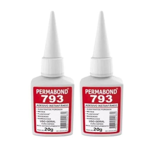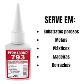 O Adesivo Instantâneo Permabond 793 possui bico econômico antientupimento e aplicação precisa. É ideal para a colagem de substratos porosos, metais, plásticos, madeiras, borrachas e muito mais. Pode ser utilizado em diversos tipos de aplicações, como na indústria automobilística, calçadista, fabricação de móveis e indústria madeireira em geral, montagem e fechamento de embalagens, indústria eletroeletrônica, fabricação de eletrodomésticos, indústria têxtil, manutenção industrial, artesanato e hobby modelismo. Esse kit contém 2 unidades de cola Promabond