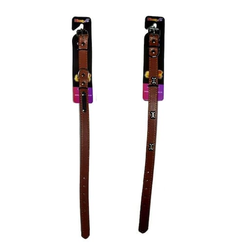 Kit 2 Coleiras material sintético Para Cachorros - Marrom M/G Coleira de material sintético. - coleira no material sintético; - confortável e muito estilosa; - ótima para deixar seu pet ainda mais charmoso; - para todos os tipos de animais e tamanhos; - resistente e com um ótimo material; - Coleira M com a placa de identificação; - Coleira G com apliques de ossinhos; Medidas: M - 44 cm de comprimento x 2 cm de largura; G - 53 cm de comprimento X 2,5 cm de largura; Marca: Nicapet Ean: 7777447568020