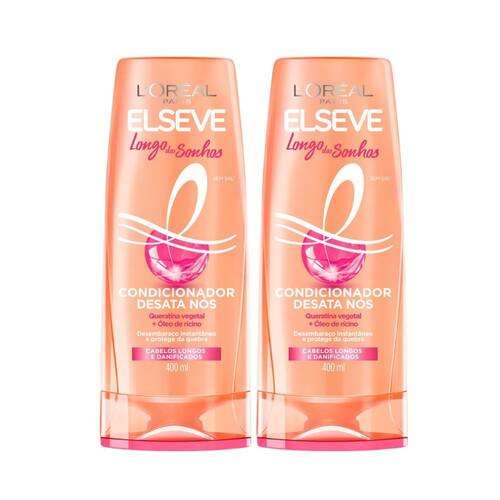Condicionador Elseve Longo dos Sonhos 400ml Você sonha em ter um cabelo longo, bonito e saudável, mas a gente sabe que no dia a dia o comprimento se danifica, pontas duplas aparecem e você acaba cortando dos cabelos. O novo Condicionador Elseve Longo dos Sonhos de L'oréal Paris repara os fios e sela as pontas, para que você diga adeus ao comprimento danificado, salvando os últimos centímetros para evitar o corte. Você pode ter um cabelo do tamanho dos seus sonhos. Com um coquetel de queratina vegetal, vitaminas e óleo de rícino, o Condicionador Elseve Longo dos Sonhos preenche e recupera as áreas fragilizadas por toda a extensão do cabelo, da raiz até as pontas. Nutre e protege, deixando o cabelo super macio e com um brilho arrasador. Ele age desembaraçando instantaneamente os fios e evitando a quebra. Com textura cremosa. Indicação: Indicado para cabelos longos e danificados. Benefícios: • desembaraço instantâneo • protege da quebra • textura cremosa.