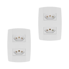 Kit 2 Conjunto 2 Tomadas Branca Monobloco 2P+T 10A 250V 4X2