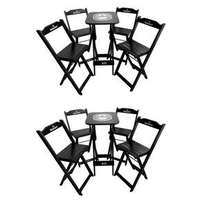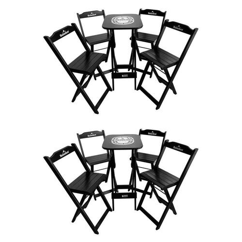 Kit 2 Conjuntos Bistrô Mesa Com 4 Banquetas Dobráveis De Madeira Personalizada Hei - Preta